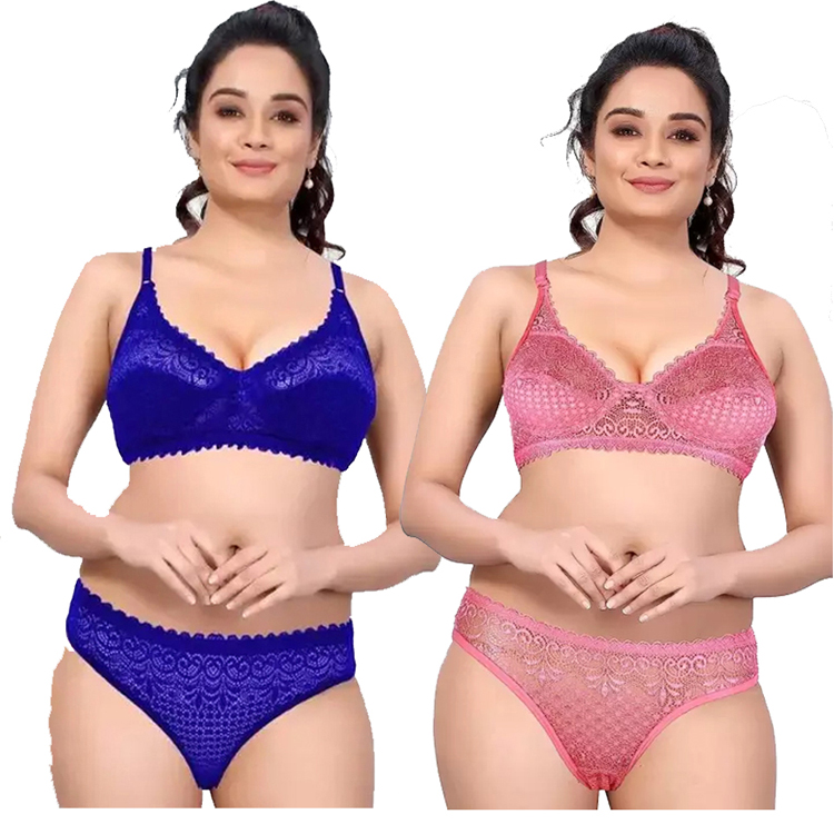 A COCKTAIL LYCRA LACE  SET is a seamed bra that gives lace an excellent design in various colors. fabric and materials used in the bra are of very fine quality and are skin-friendly. the elastic strap and belt are made of nylon which gives extra comfort to body. the bra is made of lycra lace which is very comfortable to use. lace gives a nice look to this bra. The closer type is an eye hook. The bra cup size is A cup. This is a full-coverage bra.